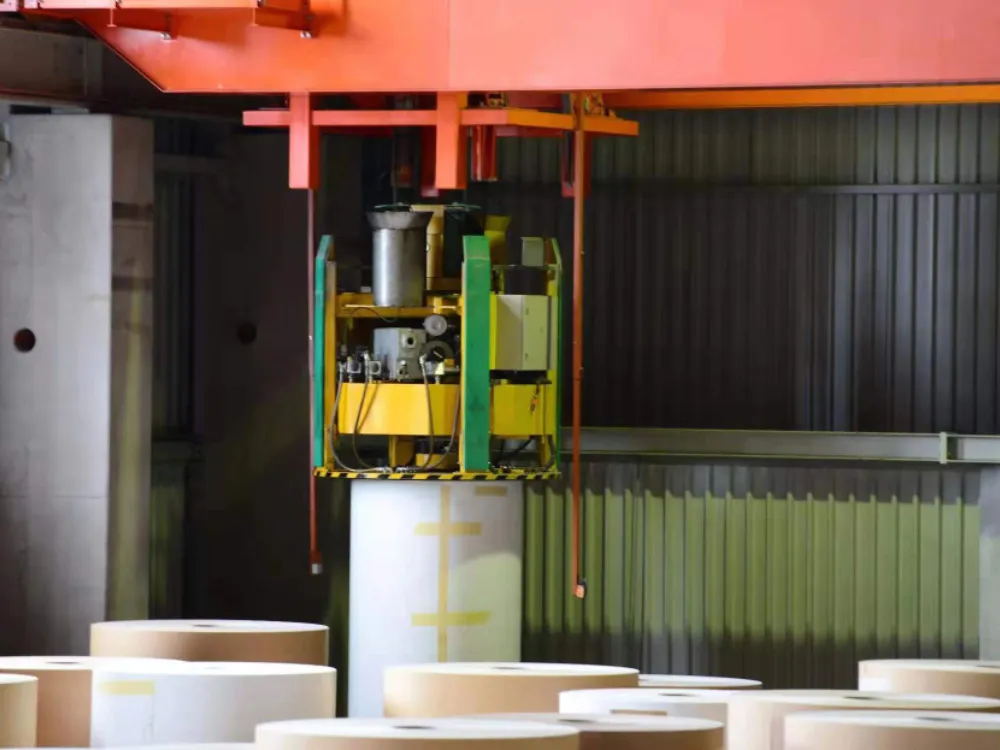 HOME  /OUR BUSINESS /PAPER ROLLS WAREHOUSING BUSINESS /Equipment  / Overhead Crane with Vacuum Lifter for Paper Rolls