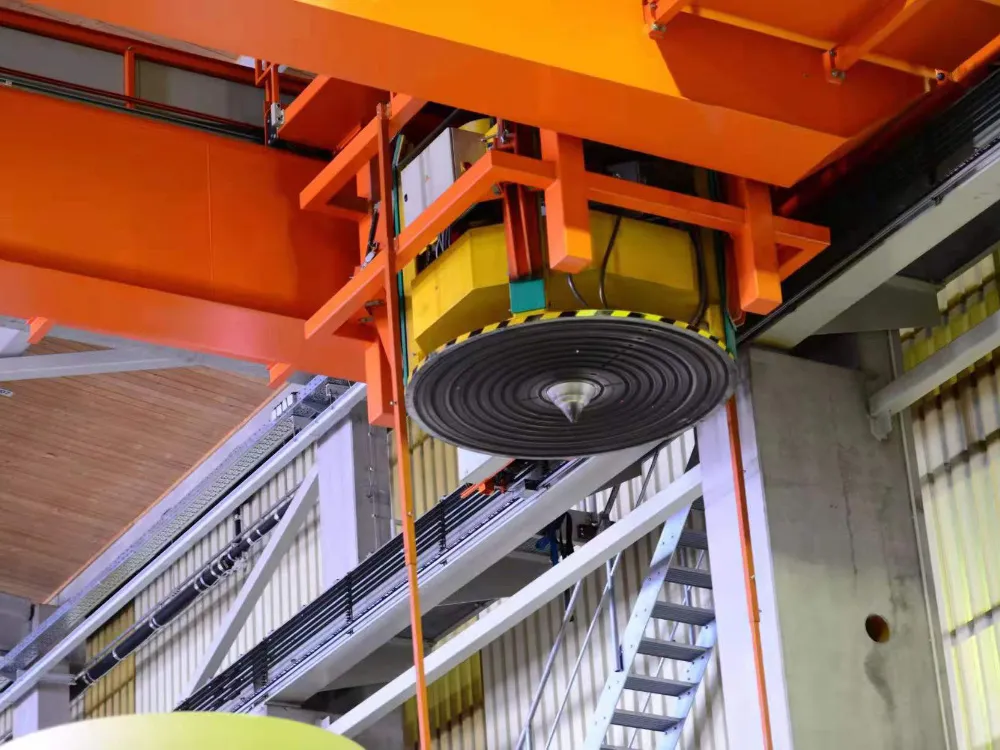 The fully automatic paper roll crane picks up the paper rolls from the conveyor belt and transports them to the warehouse under the control of the computer management system WCS and WMS or transports the paper rolls outfrom the warehouse through the conveyor.
